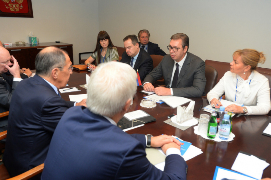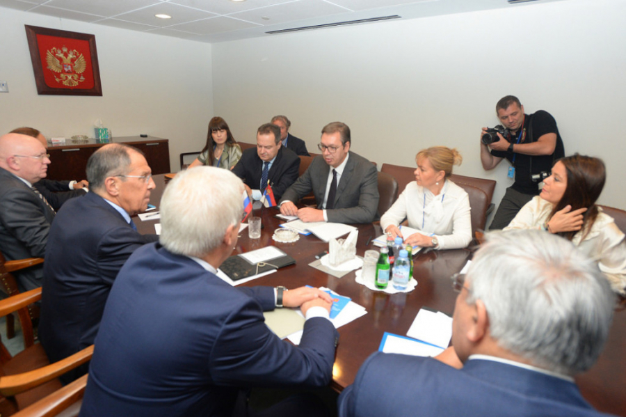 Sastanak je odrzan u sedištu UN na Ist Riveru, a šef ruske diplomatije izašao je, što nije uobičajeno, ispred kancelarije, u susret predsedniku Vučiću.