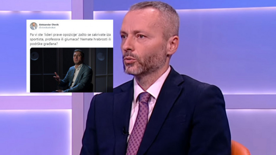 "Pa vi ste lideri prave opozicije zašto se sakrivate iza sportista, profesora ili glumaca? Nemate hrabrosti ili podrške građana", napisao je Olenik na Tviteru.