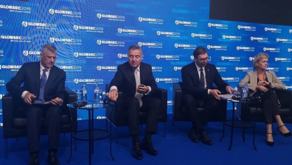 " Teritorija Kosova prema Tačijevom i albanskom gledištu pripada samo Albancima a prema našem Ustavu, celokupna teritorija Kosova pripada isključivo Srbiji i šta mi radimo? Mi radimo samo svoj posao i sprečavamo ulazak Kosova u Unesko i Interpol jer ga ne priznajemo kao nezavisnu državu... I Tači kaže da je to bilo naše agresivno ponašanje... Agresivno? Ničim nismo ugrozili žitelje na Kosovu, nismo im učinili ništa nažao... rekao je predsednik Srbije na panelu na forumu GLOBSEC 2019, koji se održava u Bratislavi.
