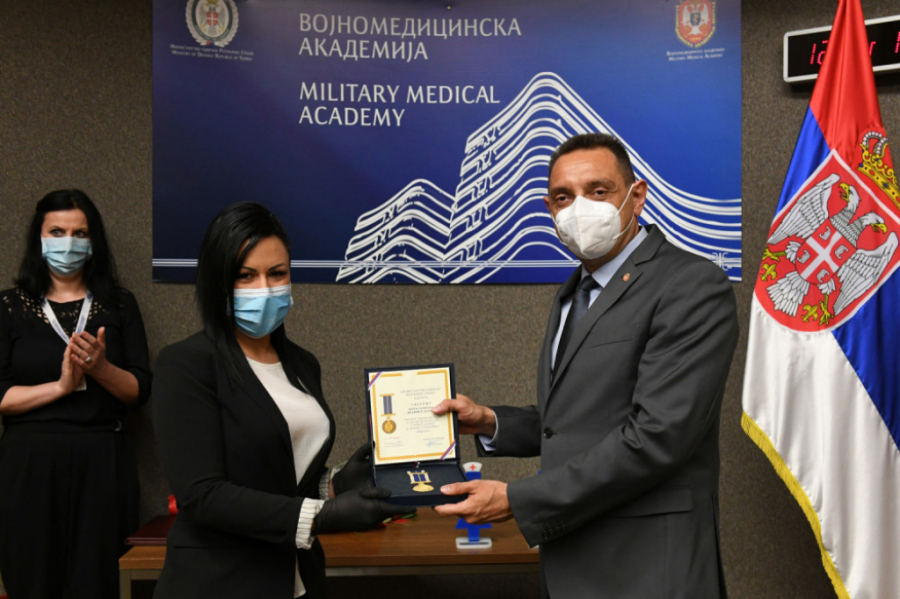 - Ove godine za najbolje su jednoglasno odabrana dva medicinska tehničara koji se još uvek nalaze na dve „vatrene“ linije borbe - sa oboljenjem Kovid-19, odnosno korona virusom, u Kovid centru Karaburma i na prijemno - trijažnoj Službi hitne pomoći Vojnomedicinske akademije, istakao je pukovnik Miroslav Vukosavljević i podsetio da više od 100 medicinskih tehničara, koji se još uvek nalaze u kovid bolnici na Karaburmi, svedoči o značaju VMA za drugu liniju odbrane od virusa.
