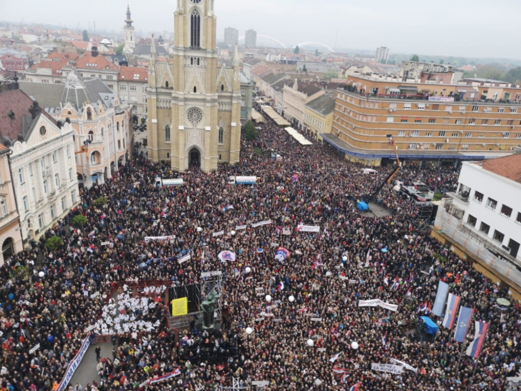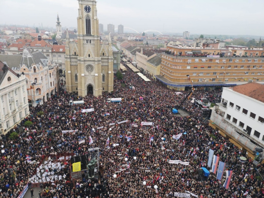 U okviru kampanje "Budućnost Srbije" u Novom Sadu se održava veliki miting na Trgu Slobode sa početkom od 18 sati. Veliki broj, prema prvim procenama više od 35 hiljada, okupio se uprkos kiši kako bi dali podršku narodnom skupu „Stop nasilju“.