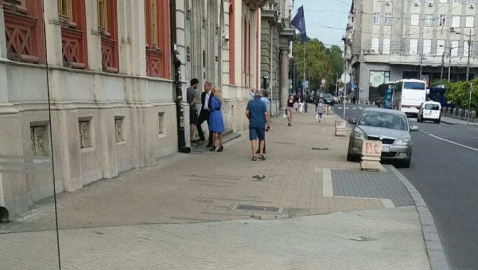 Ubrzo nakon toga, naš reporter uslikao je ispred zgrade na Studentskom trgu i aktuelnog lidera DS-a Zorana Lutovca!