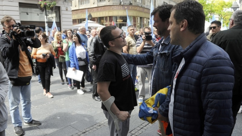 Napoznati muškarac sa štakama nasrnuo na pristalice POKS-a, vikao "Fašisti! Živeo Tito", pa umalo dobio BATINE! (FOTO)