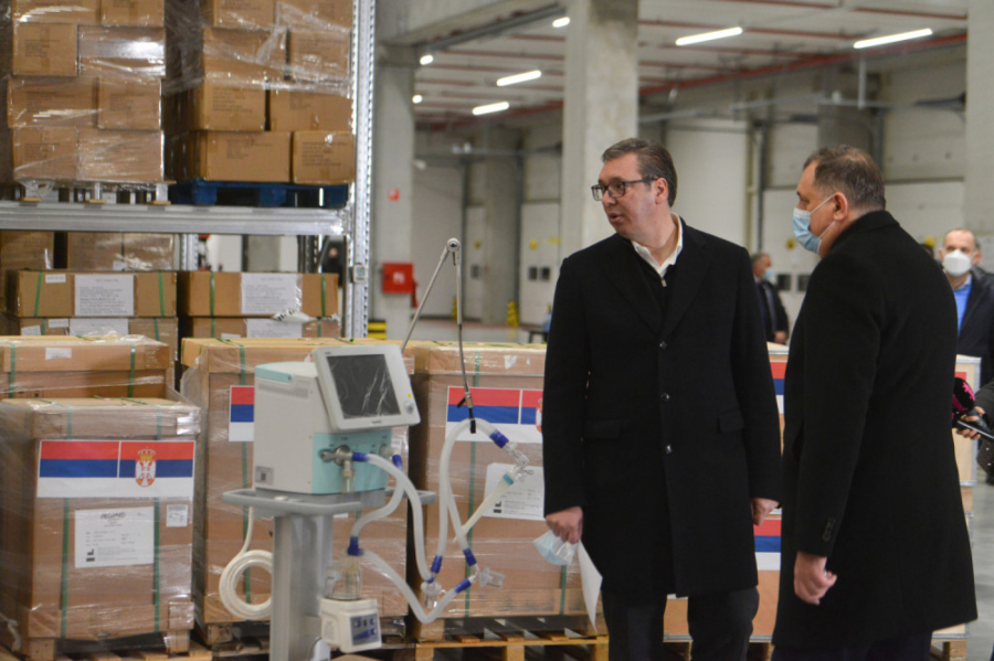 "Srbija je kupila mnogo respiratora, tačan broj je 2.200, žao mi je što ponavljate tvrdnje neuspelih političara, koji se diče svojim računima u Honkongu i Mauricijusu, mi smo respiratore kupili u najtežem trenutku. Nismo ih imali, zatekli smo loše stanje u zdravstvu, kupovali smo sve što je neophodno. Kazaću vam koja je prosečna cena, danas su mnogo jeftiniji, od 18 do 35 hiljada, išla je cena i do 52 hiljade, ali ih tada nismo kupovali, to je prosečna cena respiratora. Meni je zanimljivo nešto drugo, da kada se borite, morate da se branite od onih političara koji bi čak i na nabavci respiratora ukrali pare od naroda", rekao je Vučić.