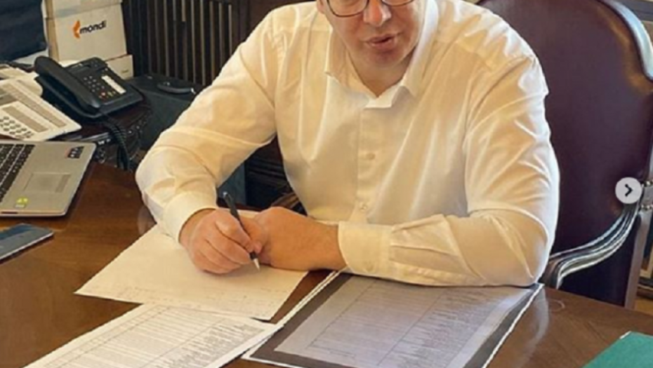 Na svom oficijelnom Instagram profilu "buducnostsrbijeav", predsednik Srbije Aleksandar Vučić postavio je novi post. U njemu je napisao da trenutno radi na završetku velike nabavke novih respiratora i zaštitne opreme. Takođe, predsednika možemo videti u svom radnom okruženju - u kabinetu Predsedništva Srbije.