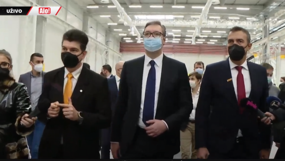 Sa predsednikom, fabriku obilazi i predsednik Vlade Ana Brnabić i gradonačelnik Novog Sada Miloš Vučević.