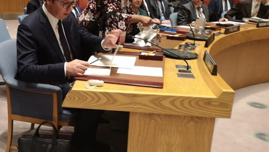 Predsednik Srbije Aleksandar Vučić objavio je na Tviteru nekoliko rečenica iz večerašnjeg obraćanja Savetu bezbednosti Ujedinjenih nacija (SBUN), uz par fotografija sa sednice.