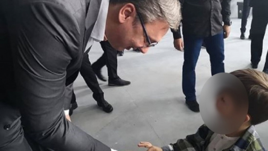 Tokom pauze između obaveza, obilaska fabričkog kompleksa, Aleksandar Vučić je naišao na dečaka Tadiju sa kojim se pozdravio, a onda je usledilo iznenađenje.