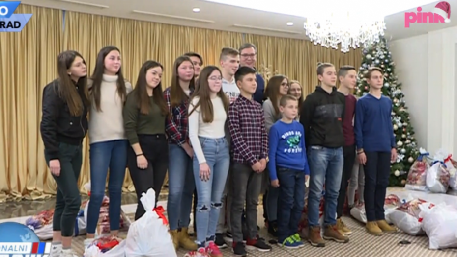 Mališanima iz Vukovara, Borovog sela, Islama Grčkog, sela Kašića, Ervenika, Uzdolja, Zagorja, Krnjaka, Knina i Kistanja kojima predsednik u vili Mir uručuje paketiće.
