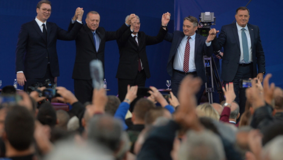 Predsednik Srbije Aleksandar Vučić, predsednik Turske Redžep Tajip Erdogan i članovi predsedništva BIH prisustvovali su polaganju kamena temeljca za auto-put Beograd-Sarajevo.