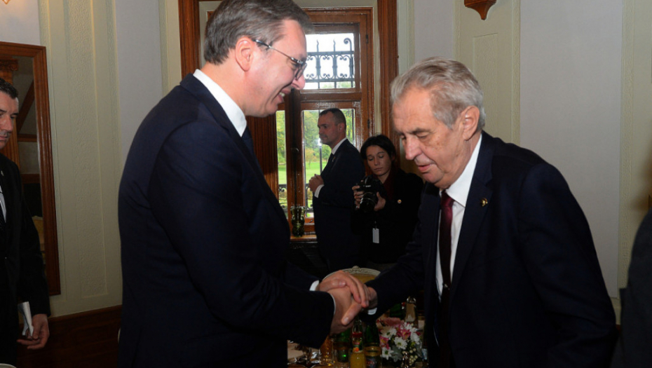 "Zahvalan sam predsedniku Češke Milošu Zemanu na stavovima po pitanju Kosova. Danas sam govorio o našoj politici prema Kosovu i o problemima sa kojima se suočavamo. Ponovio sam stav Srbije da je kompromisno rešenje jedini mogući put za budućnost celog Zapadnog Balkana i u EU, ali i za bolje odnose između ljudi koji žive na Zapadnom Balkanu", rekao je Vučić.