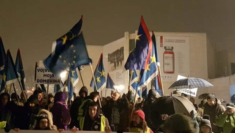 Šačica Đilasovih šestača nosila je sinoć na protestima u Novom Sadu separatističke zastave takozvane nezavisne Vojvodine čime su još jednom dokazane prave namere Dragana Đilasa i ostalih iz Saveza za Srbiju.