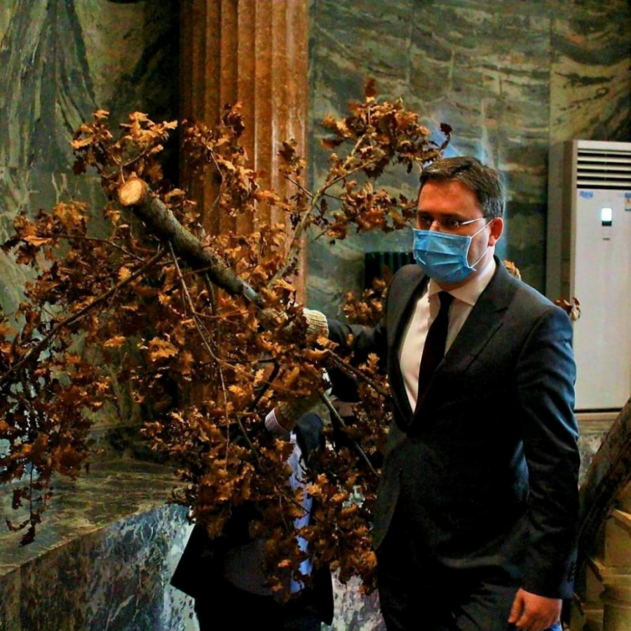 On je u Ministarstvo spoljnih poslova uneo badnjak što je objavio i na društvenoj mreži Instagram.