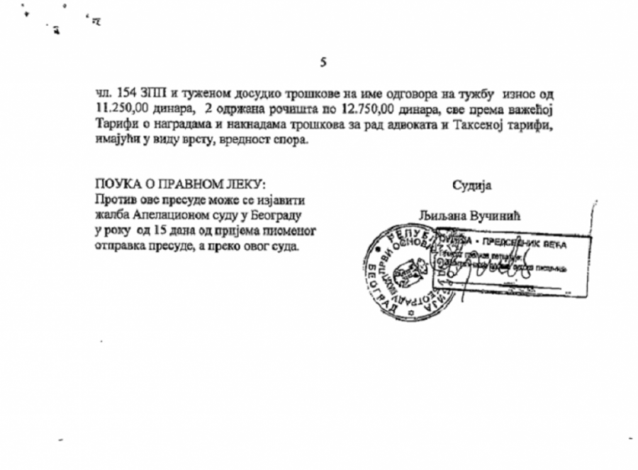 Presudu sudije Ljiljane Vučinić prenosimo u celosti.
