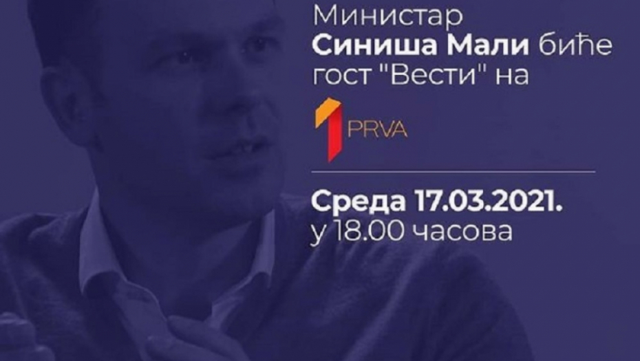 U sredu 17. marta ministar finansija Siniša Mali biće gost "Vesti" na Tv Prva u 18.00 časova.