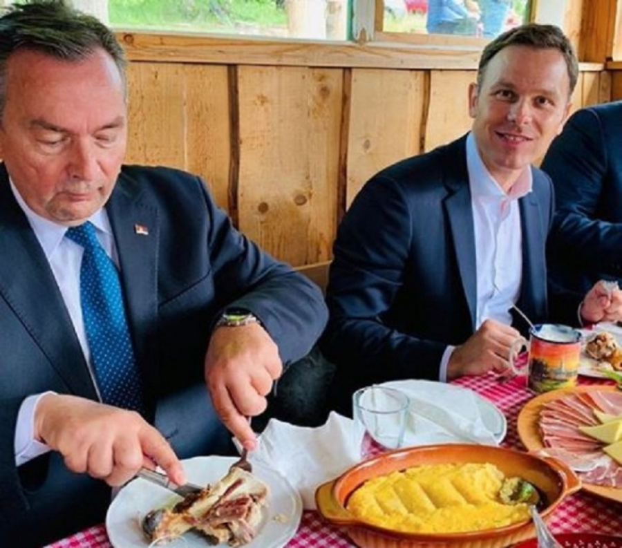 - U selu Jandrin Pod su nas dočekali Tomići, koji su familija mom dugogodišnjem saradniku i šefu kabineta. Postarali su se da imamo pravi ugođaj, pa su se tako na stolu našli specijaliteti tog kraja, kao što je cicvara, ali i čuvena “drenja”, odnosno rakija od drenjine, napisao je Siniša Mali i dodao da je posebno zahvalan deda Rajku koji se postarao da imaju pravi ugodjaj.