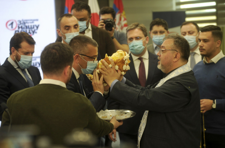 Obeležavanju slave u prostorijama stranke prisustvuju najviši funkcioneri SNS-a. Poštuju se sve epidemiološke mere.