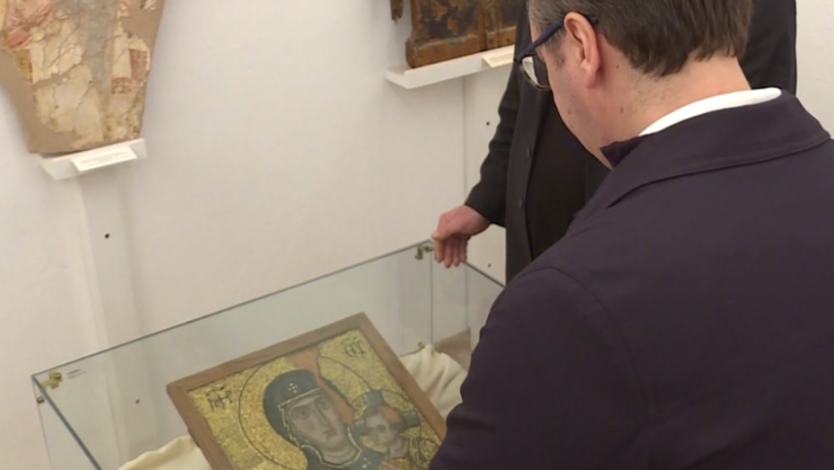 Vučić je dosta vremena tokom obilaska proveo u molitvi ispred ikone Bogorodice Trojeručice.