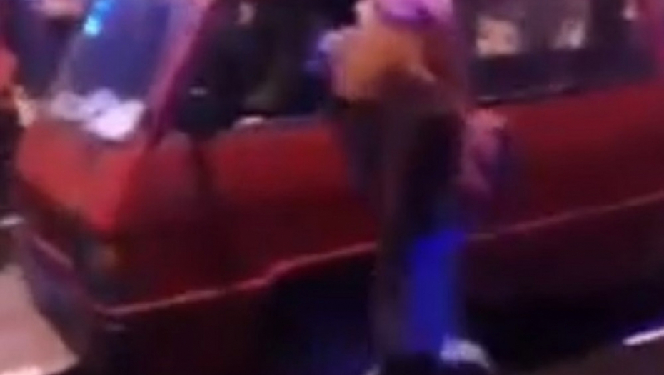 Na snimku se vidi kako jedna od učesnica protesta, verovatno pod dejstvom alkohola, viče na sav glas dok su prolaznici gledali u čudu.