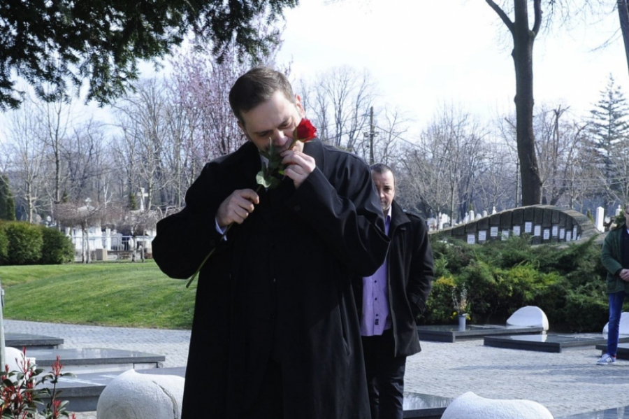 Ispred zgrade vlade u Nemanjinoj učesnici "Šetnje za Zorana" ostavili su crvene i bele ruže. Nakon polaganja cveća, kolona građan je krenula ka Novom groblju.
