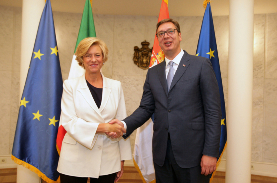 Predsednik je potom razgovarao sa Rouz Gotemiler, zamenicom generalnog sekretara NATO, kao i sa Robertom Pinoti, ministarkom odbrane Italije. Vučić i Pinoti su se saglasili da dve zemlje imaju izuzetno visok nivo političkih i ekonomskih odnosa. Vučić je istakao da Italija daje veliku podršku evropskim integracijama Srbije i uputio ličnu poruku zahvalnosti predsedniku i premijeru te zemlje na značaju koji pridaju saradnji sa Srbijom, o čemu svedoči i prisustvo italijanske delegacije na današnjoj svečanosti na visokom nivou. Podrška se, kako je rekao, ogleda i kroz ambiciozan pristup Italije Berlinskom procesu i razumevanjem potreba regiona. Srpski predsednik ponovio je potrebu čvršćeg ekonomskog i infrastrukturnog povezivanja Zapadnog Balkana radi napretka celog regiona.