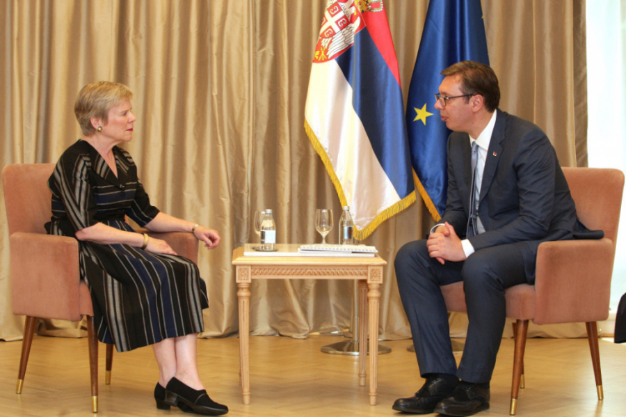Vučić je, na sastanku sa zamenikom generalnog sekretara NATO-a Rouz Gotemeler, zahvalio za ulogu Kfora, kao garanta bezbednosti Srba na Kosovu i Metohiji. Vučić je rekao da Beograd veoma ceni odluku da taj vojni savez na visokom nivou bude predstavljen na svečanom prijemu povodom inauguracije, što je znak međusobnog uvažavanja i dobre saradnje koja se razvija uprkos vojnoj neutralnosti Srbije. On je zamolio Gotemelerovu da prenese pozdrave generalnom sekretaru Alijanse Jensu Stoltenbergu, koji odmerenim izjavama pokazuje razumevanje za poziciju Srbije i njene vitalne interese. Gotemelerova je podržala napore koje Srbija ulaže u očuvanje stabilnosti i širenje saradnje u regionu, te izrazila zadovoljstvo što su Srbija i NATO intenzivirali dijalog na najvišem nivou, uz poštovanje pozicije Srbije o vojnoj neutralnosti. Ona je ponovila poziv Stoltenberga da Vučić poseti sedište NATO-a u Briselu.