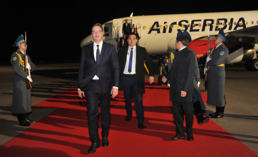 Podsećamo, predsednik Srbije Aleksandar Vučić doputovao je u Astanu, u zvaničnu dvodnevnu posetu Kazahstanu, na poziv predsednika kazahstanske države Nursultana Nazarbajeva.