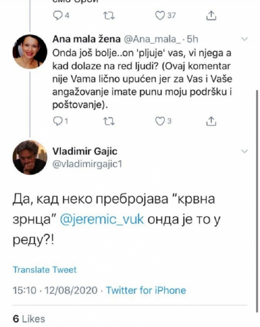 - To što neko prebrojava krvna zrnca Vuku Jeremiću je ok?! - upitao se Gajić.