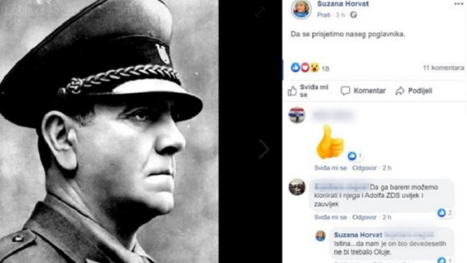 Suzana Horvat sliku je objavila uz status: "Da se prisjetimo našeg poglavnika." Ubrzo je status obrisala.