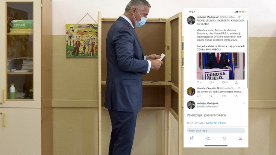"Milan Marković, pomoćnik ministra Simovića, član Vlade DPS, u evidenciji sigurnog glasa DPS bio evidentiran kao siguran glasač za izbore 2020. Sada je kandidat za ministra poljoprivrede! Džaba smo krečili", napisao je Nebojša Medojević na Tviteru.