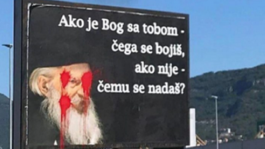 Komitska rulja u vandalskom naletu oskrnavila bilbord sa likom patrijarha Pavla (FOTO)