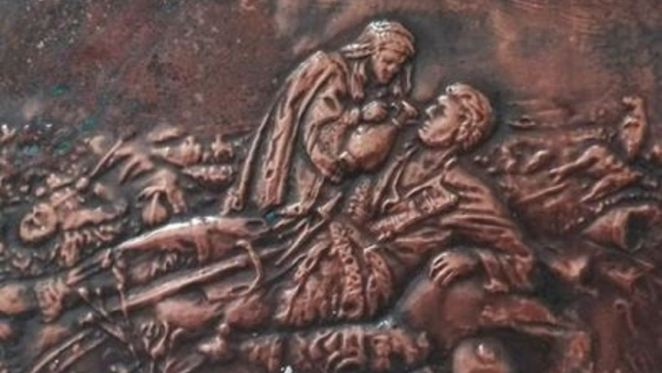 Delo, rađeno na limu, na kojoj je prikazana devojka koja vodom poji ratnika ranjenog u Kosovskom boju, bila je, navodi se, simbol te organizacije.