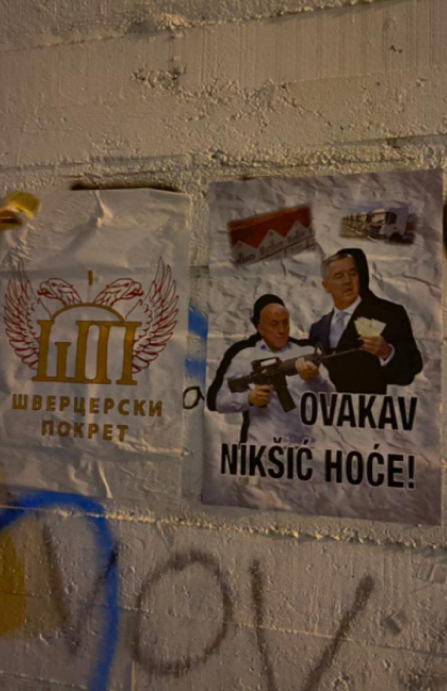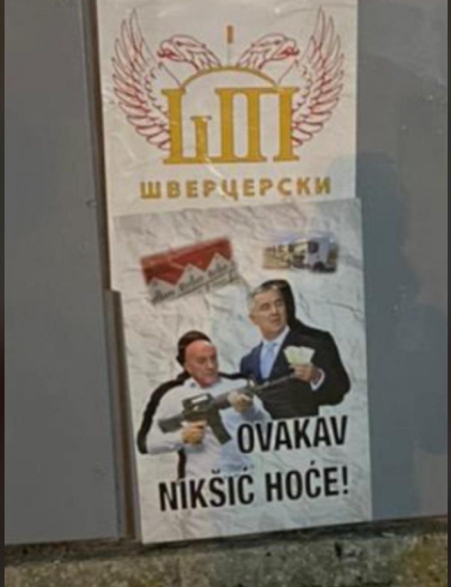 Na fotografijama pomenuti Daka u rukama drži snajper, a pored njega stoji Milo Đukanović. Na plakatu stoji natpis: Ovakav Nikšić hoće!