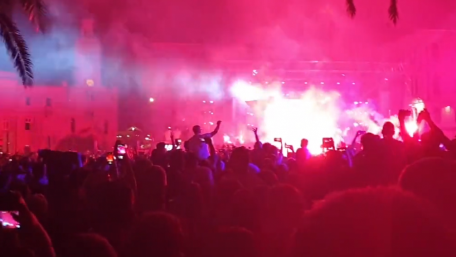“Pozdravljam branitelje, da li je Torcida tu. Sutra ćemo da proslavimo jedan od najvećih trenutaka u hrvatskoj istoriji. Idemo slaviti”, rekao je pevač.