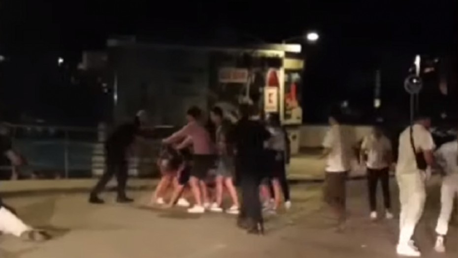 Na platou na splitskoj plaži Bačvice, noćas oko 1 sat izbila je masovna tuča u kojoj je, što aktivno, što pokušavajući da smire situaciju, učestvovalo desetak stranih državljana. U metežu su uglavnom učestvovali mladići, ali na snimku se vidi i jedna devojka koja uporno pokušava da interveniše a koju policajac uporno pokušava da udalji.