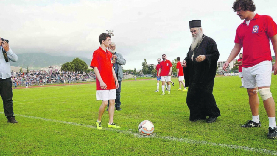 Naime, povodom hiljadu godina od stradanja Svetog Jovana Vladimira, znamenitog dioklijskog kneza, na stadionu SRC „Topolica“ tokom vikenda je u Baru odigrana revijalna utakmica između veterana FK Mornar i glumaca iz filmova „Montevideo“ i „Bićemo prvaci“. A početni udarac na toj utakmici izveo je upravo mitropolit crnogorsko-primorski. Nakon vrlo uspešnog šuta, on je dobio gromoglasan aplauz publike.