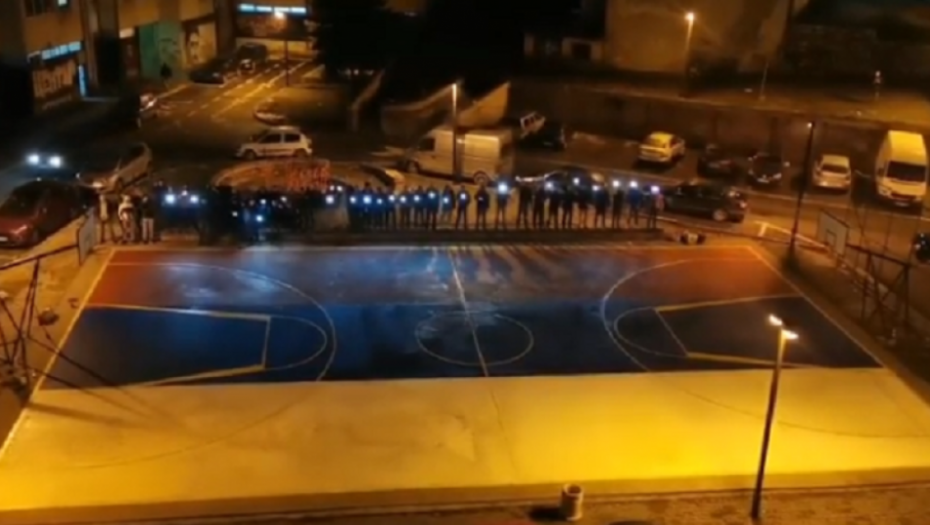 Grupa građana okupila se večeras u Pljevljima pored košarkaškog terena koji su sami ofarbali bojama trobojke nekadašnje Kraljevine Crne Gore.