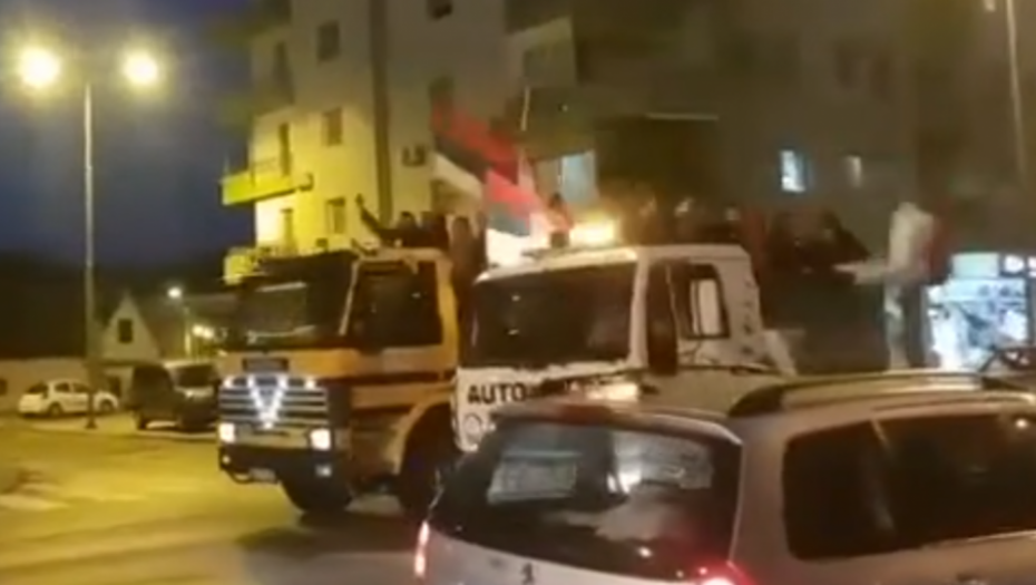Vozili su u koloni građani Berana, Bijelog polja i Andrijevice. Čuju se sirene, vijore se srpske trobojke. I onda, u slavu srpstva, srpske Crne Gore, pravoslavlja i SPC, kolima su formirali krst i veliki natpis "Podrška Nikšiću".
