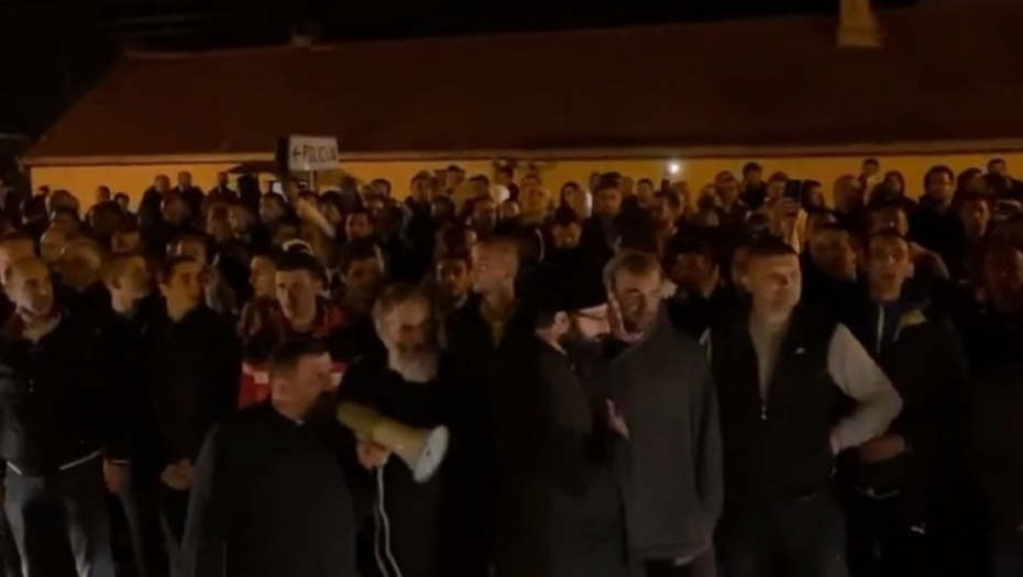 Ispred Parohijskog doma okupio se i veliki broj ljudi, a okupljeni skandiraju: "Ne damo svetinje, ne damo vladiku", prenosi crnogorski javni servis.