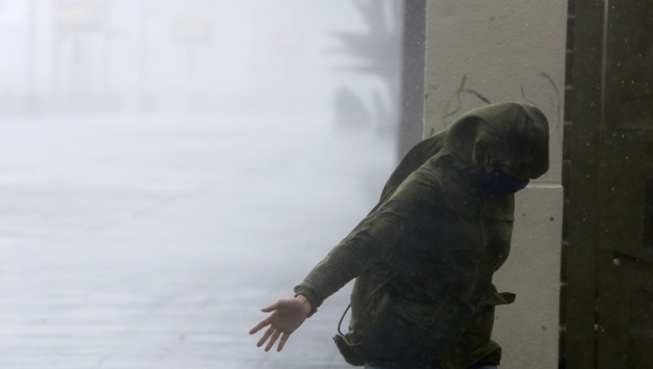Na snimku koji se pojavio na drustvenim mrežama vidi se muškarac koji je ispred porodične kuće jedva izbegao stablo koje se srušilo.