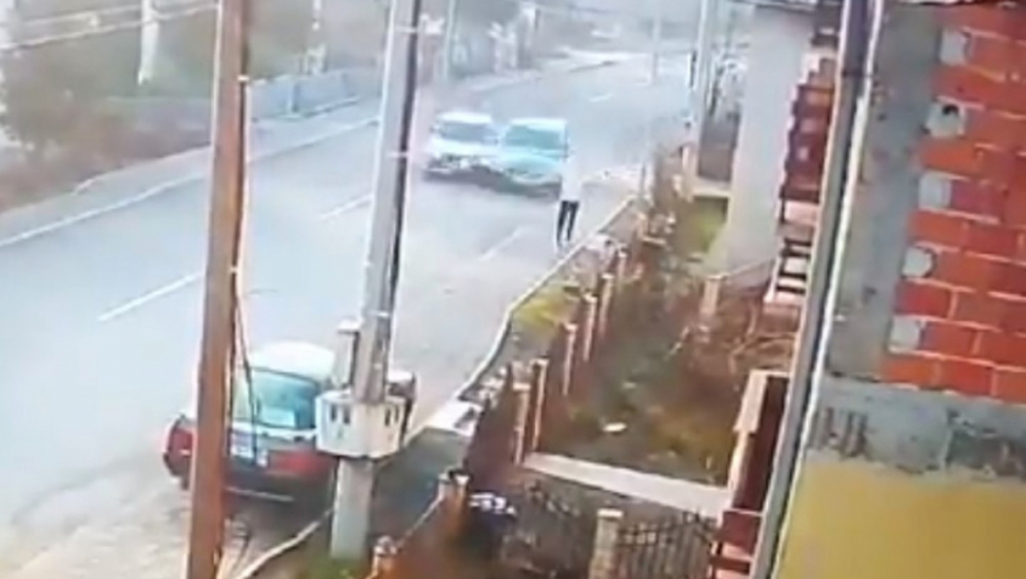 Za samo nekoliko koraka pešak je izbegao tragediju kada je vozilo udario u auto koji je skretao i zatim u automobil koji je bio parkiran na ivičnjaku.