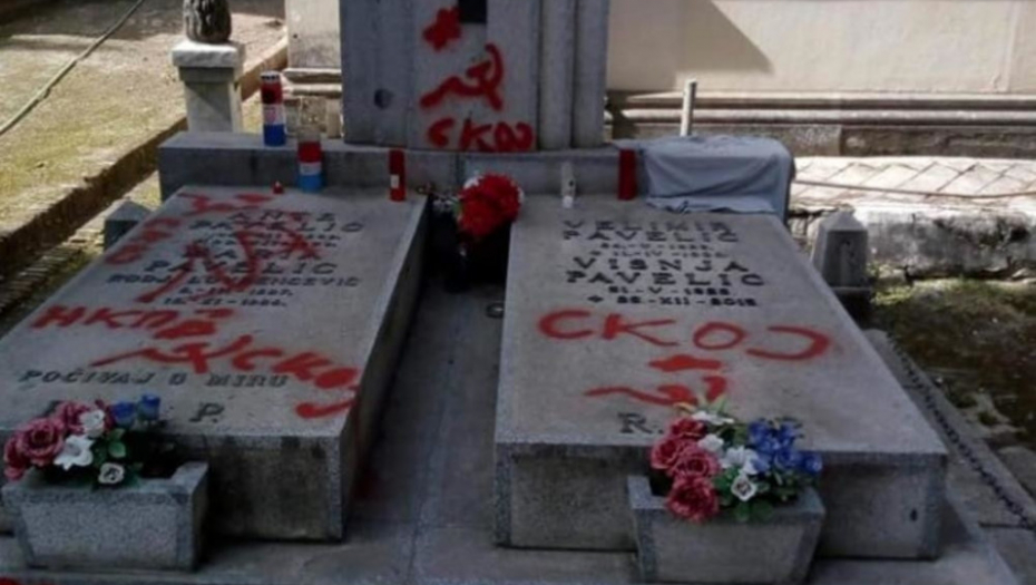 U saopštenju koje je ovim povodom objavio odbor koji brine o zaostavštini Višnje Pavelić, ćerke Ante Pavelića, navodi se da su oba grobna mesta išarana crvenom bojom, natpisima SKOJ i zvezdom petokrakom.