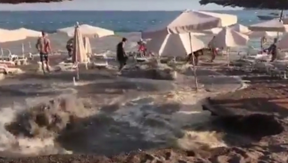 Pojedini delovi Budve noćas nisu imali vodu nakon što je na plaži u Bečićima pukla vodovodna cev. Voda koja je šikljala iz puknute cevi odnela je pola plaže, a mnogi kupači ostali su bez svojih stvari.