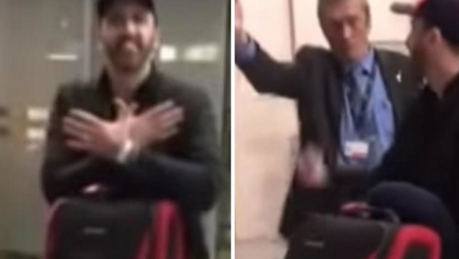 Naime, sve je to kamerom mobilnog telefona snimila njegova rođaka koja ga je čekala na aerodromu.