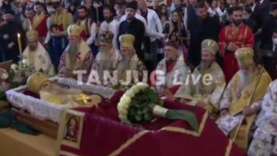 Tokom zaupokojene liturgije koju služi patrijarh Irinej, kovčeg sa telom preminulog mitropolita je otvoren, kako bi se brojni vernici oprostili od njega, a jedan detalj se posebno ističe.