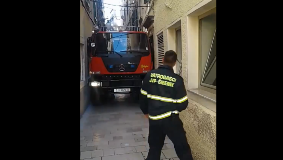Vatrogasno vozilo za milimetar je prošlo kroz usku uličicu centra u Šibeniku.