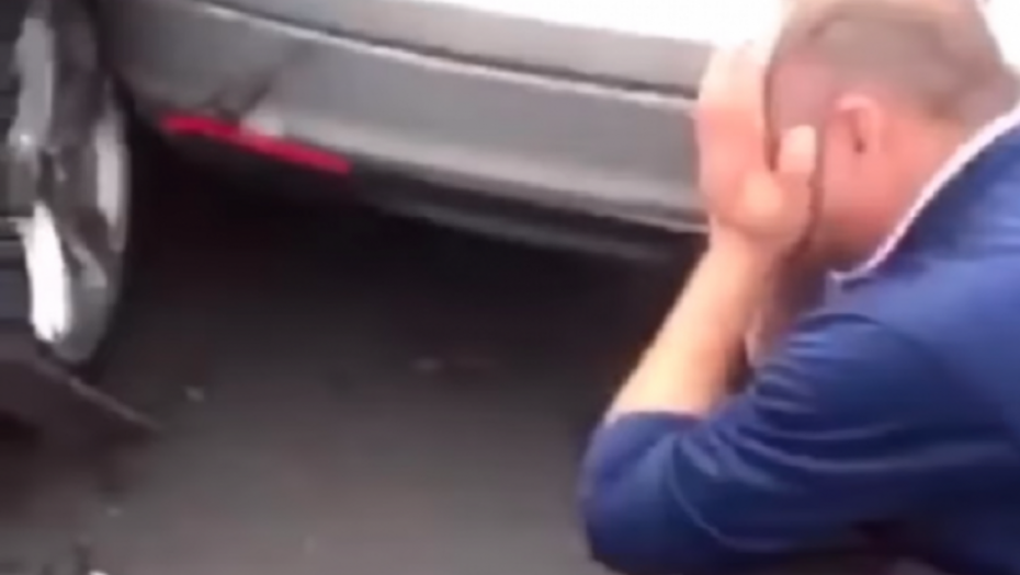 Vozač koji je izazvao sudar potom izlazi iz automobila, ali sa kamerom koja je i dalje upaljena. Nastavio je da snima, tako da se na snimku može videti i šteta koja je napravljena i reakcija čoveka u čiji je automobil udario.