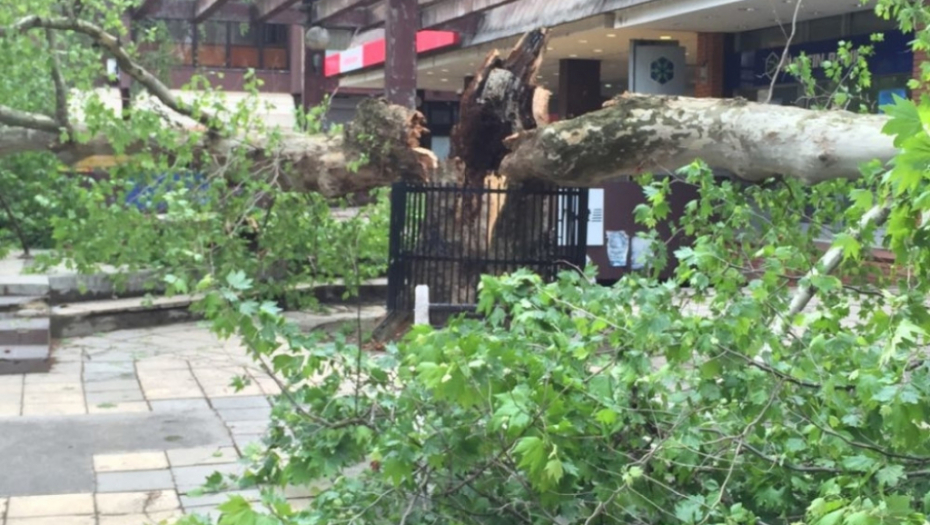 Stablo se uzdužno pocepalo na dva dela i srušilo se u dva pravca, ka zgradi banke i Elektrodistribucije. U trenutku pada ogromnog stabla sa krošnjom, srećom, nije bilo prolaznika.
