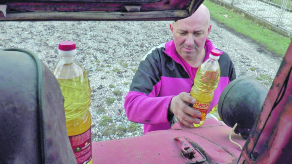 „U rezervoar se sipa 10 litara evrodizela, litar benzina i 40 litara suncokretovog ulja. To ukupno košta oko 5.500 dinara, dok isto toliko nafte košta oko 8.500 dinara. Znači, ušteda je oko 50 evra na svakih 100 litara. Da bih poorao 10 hektara, potrebno mi je oko 400 litara goriva, pa mi je ušteda 200 evra“, otkriva Jovanović.