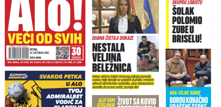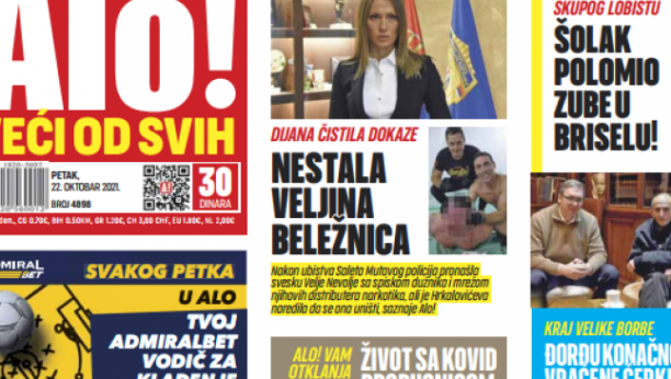 Nakon ubistva Saleta Mutavog policija pronašla svesku Velje Nevolje sa spiskom dužnika i mrežom njihovih distributera narkotika, ali je Hrkalovićeva naredila da se ona uništi, saznaje Alo!